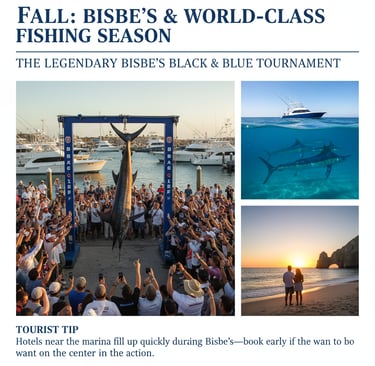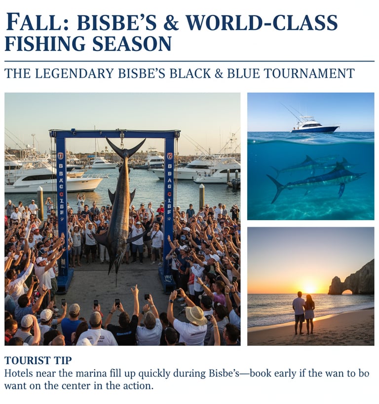 El legendario Torneo Bisbee's Black & Blue: Cada octubre, Los Cabos alberga el Bisbee's Black & Blue, uno de los torneos de pesca más famosos y prestigiosos del mundo.